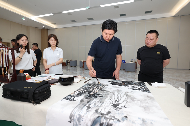 湖南省衡陽(yáng)市書(shū)畫(huà)院資深書(shū)畫(huà)家郭健大師、山西大學(xué)美術(shù)學(xué)院常瀟教授等書(shū)畫(huà)名家現(xiàn)場(chǎng)潑墨,以精湛技藝點(diǎn)亮藝術(shù)空間。